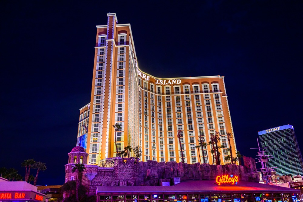 zum Treasure Island. Dort liegen zwei Piratenschiffe „vor Anker“ und in früheren Zeiten wurde dort eine tolle Show abgeliefert. Die Live-Show musste der Technik weichen und zurück blieben zwei aufwändig illuminierte Schiffe.