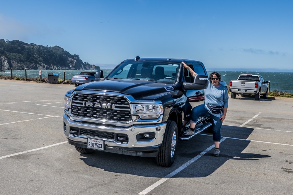Nach dem ersten Stop fahren wir den Rest der Straße bis nach ganz oben, parken den Dicken mit der Ladefläche zum Damm ein und genießen auf der Ladeklappe (die Trittstufe eignet sich hervorragend um Abstellen der Füße, wenn man auf der Klappe sitzt) ein kleines Picknick.