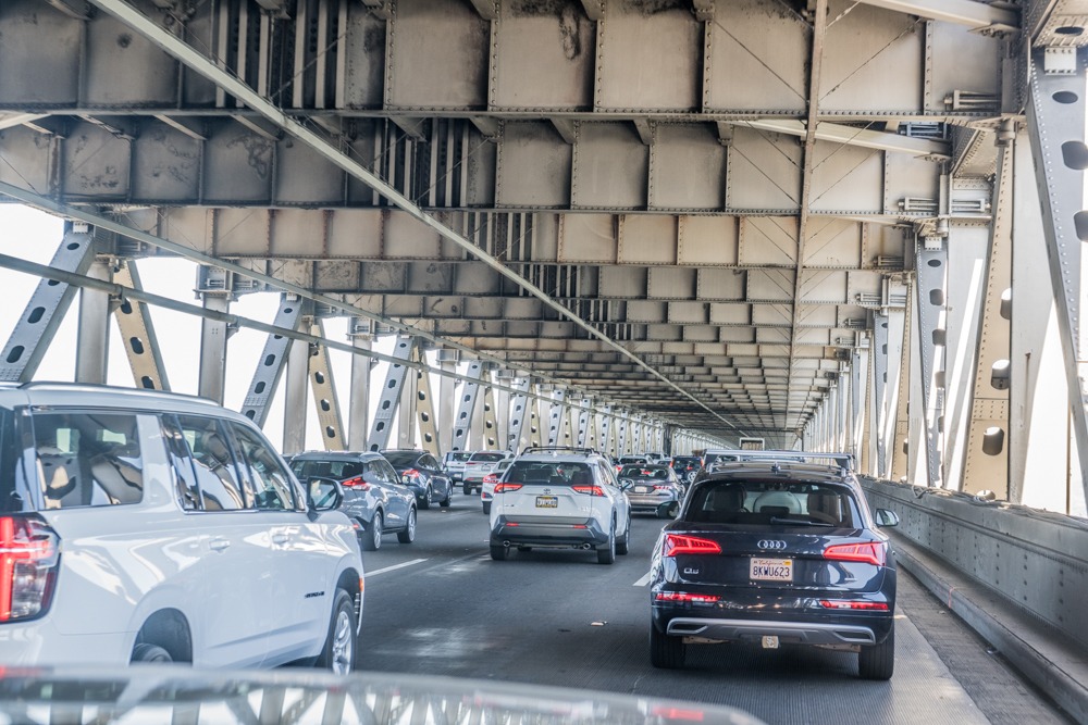 Die Straße führt bergab und an einem großen Parkplatz halten wir, um den obligatorischen Gang über die Mike O’Callaghan – Pat Tillman Bridge anzutreten. Ist einfach notwendig, um meiner Wanderin die Höhenangst abzutrainieren. Noch steht sie nicht am Geländer, aber das üben wir noch.