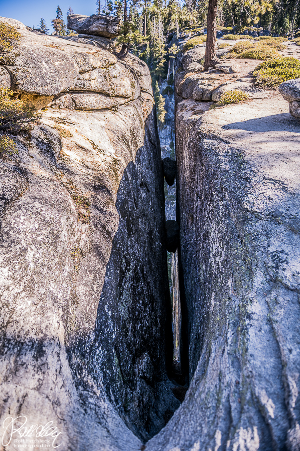 Und wenn man den Blick von der Schlucht abwenden kann, erhebt sich auf der anderen Seite des Weges steil und unnahbar der Sentinel Dome.