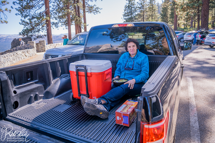 Schließlich quetschen wir unsere Black Beauty in eine hinreichend große Lücke und beschließen, erstmal in Ruhe den Glacier Point zu besichtigen.