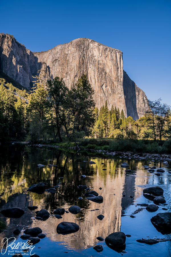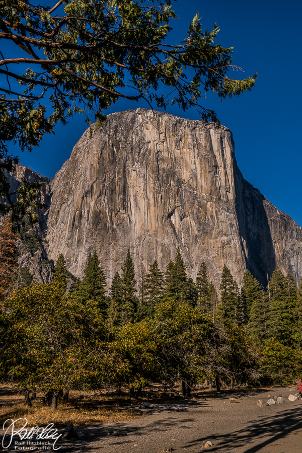 Auf dem weiteren Weg durch das Tal linker Hand El Capitan. Senkrecht und mächtig reckt er sich in den Himmel.