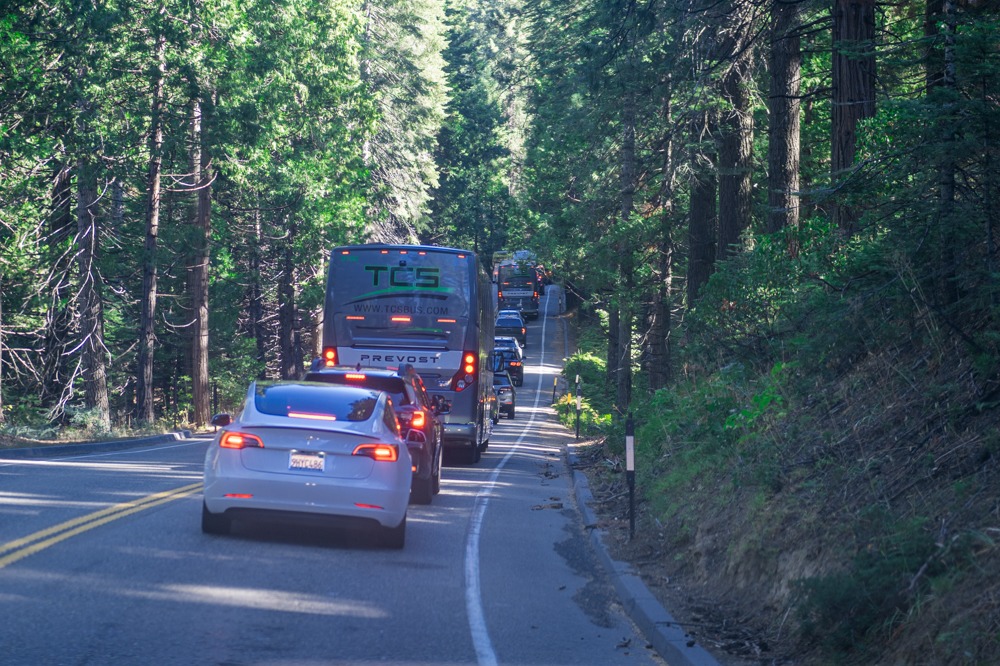 und machen uns auf den Weg in die Berge. Ca. 17 Meilen gewundene Bergstraße mit einem Maximaltempo von 35 mph kosten ihren Zeit. Und so stehen wir SCHON um 9.17 Uhr am Gate zum Yosemite National Park. Bzw. wir stehen in der Schlange mit vielen anderen.