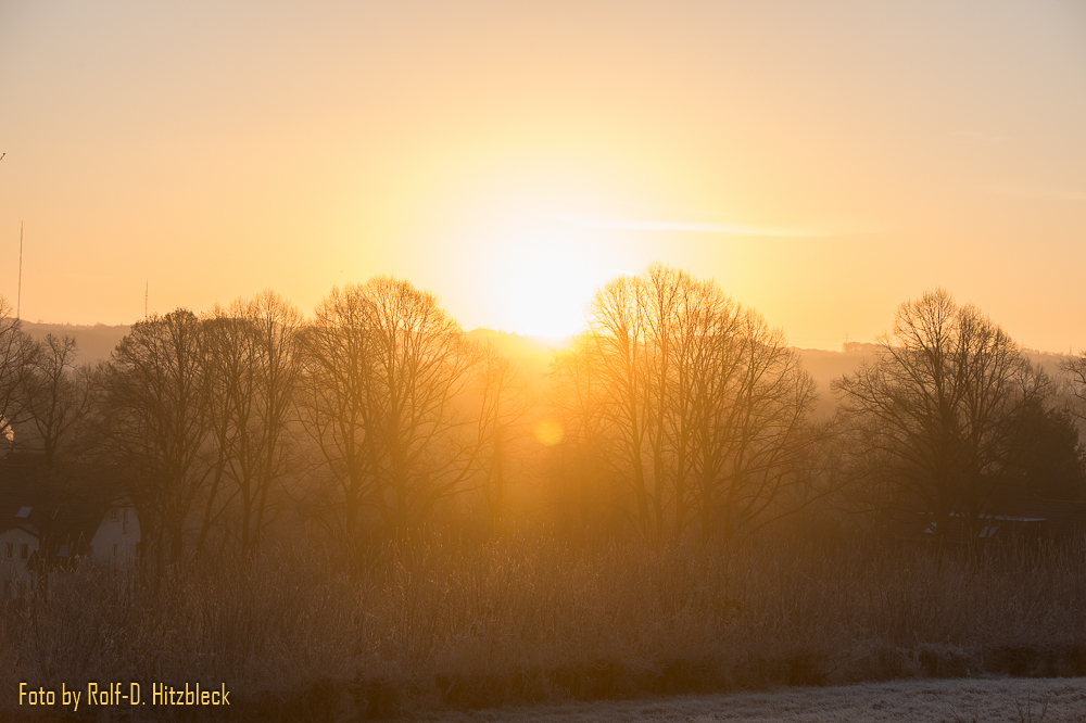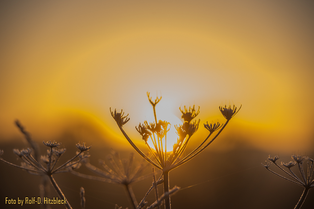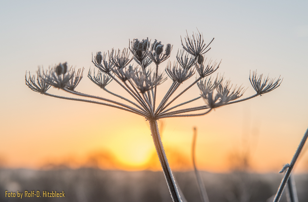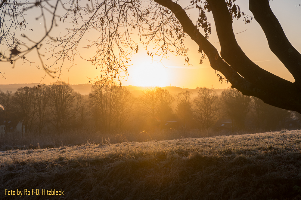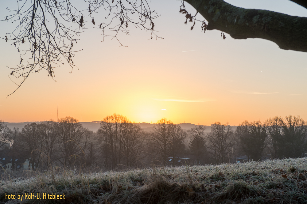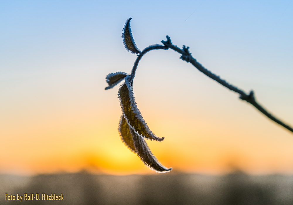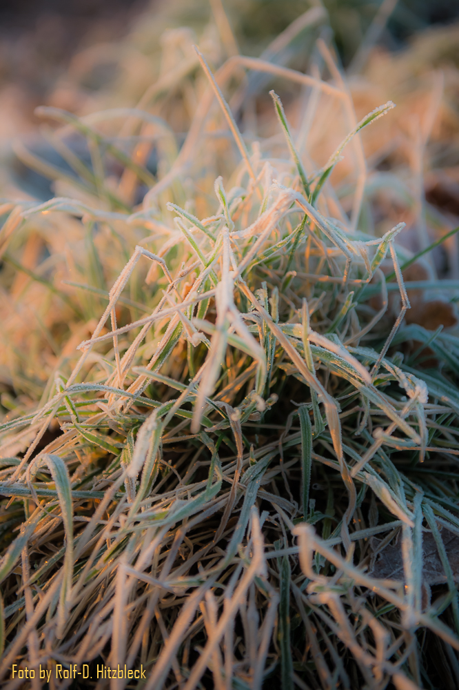 Die Gräser und was sonst noch so am Wegesrand stand, war in Raureif getaucht. Die Hunde, die mit ihren Besitzern an der Leine unterwegs waren, dampften ihren Atem in die klare Winterluft. Bis die Sonne hinter dem Berg hervorkroch und auch danach: Schießen, was das Zeug hält. Und immer hoffen, dass die kalten Finger nicht allzuviele Aufnahmen verwackeln.